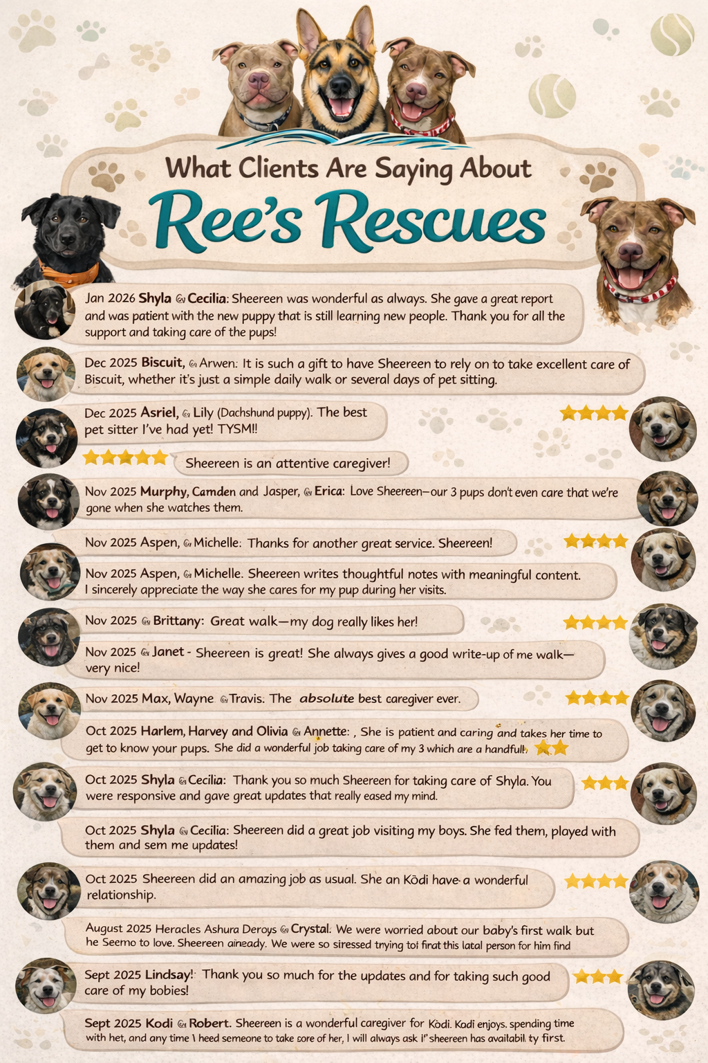As I transition from Wag to Ree’s Rescues, our mission remains at the heart of everything we do: helping shelter dogs find better homes through proper training and thoughtful socialization. This shift allows us to fully dedicate ourselves to providing more personalized care while supporting dogs on their journey from shelter life to a loving, permanent home.